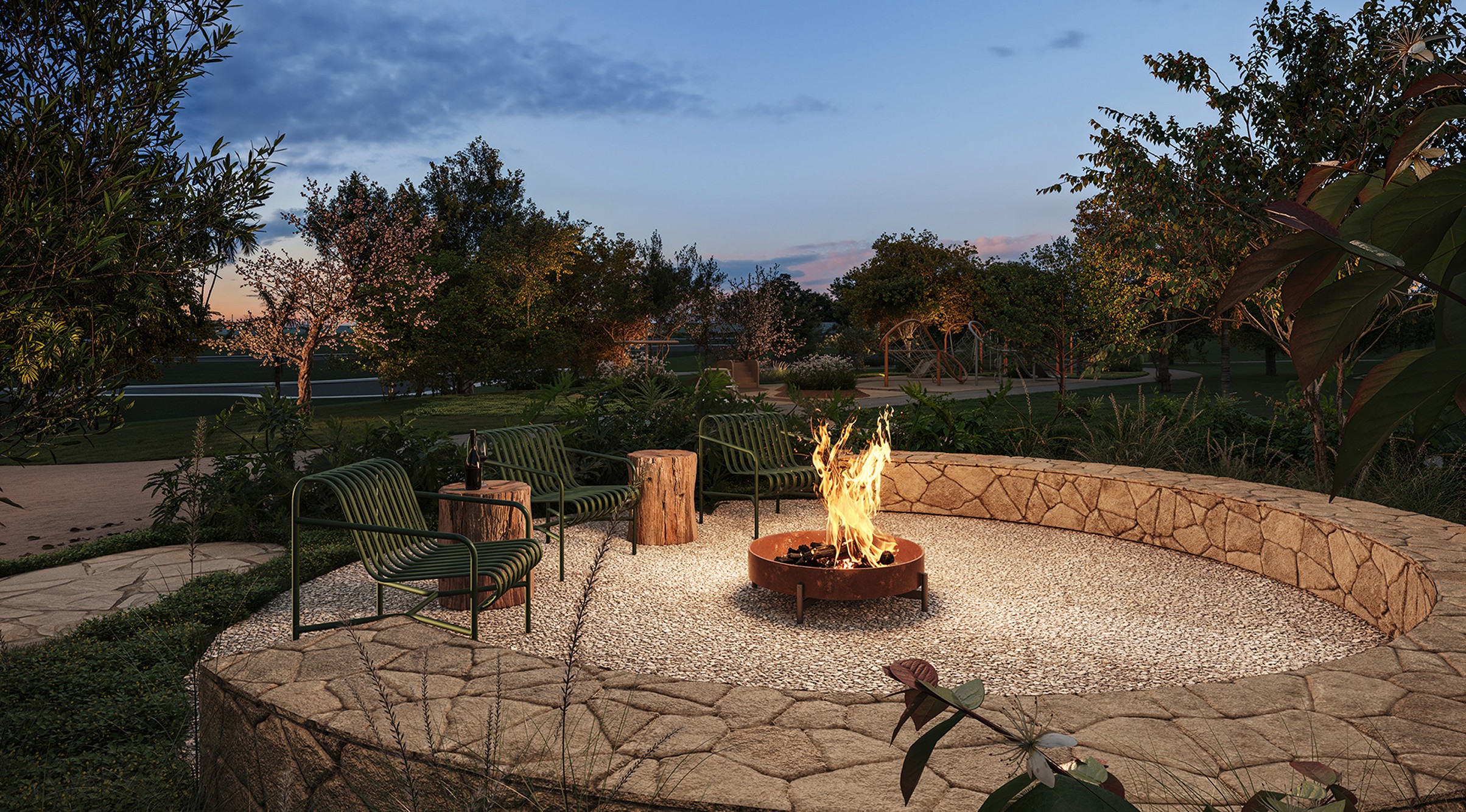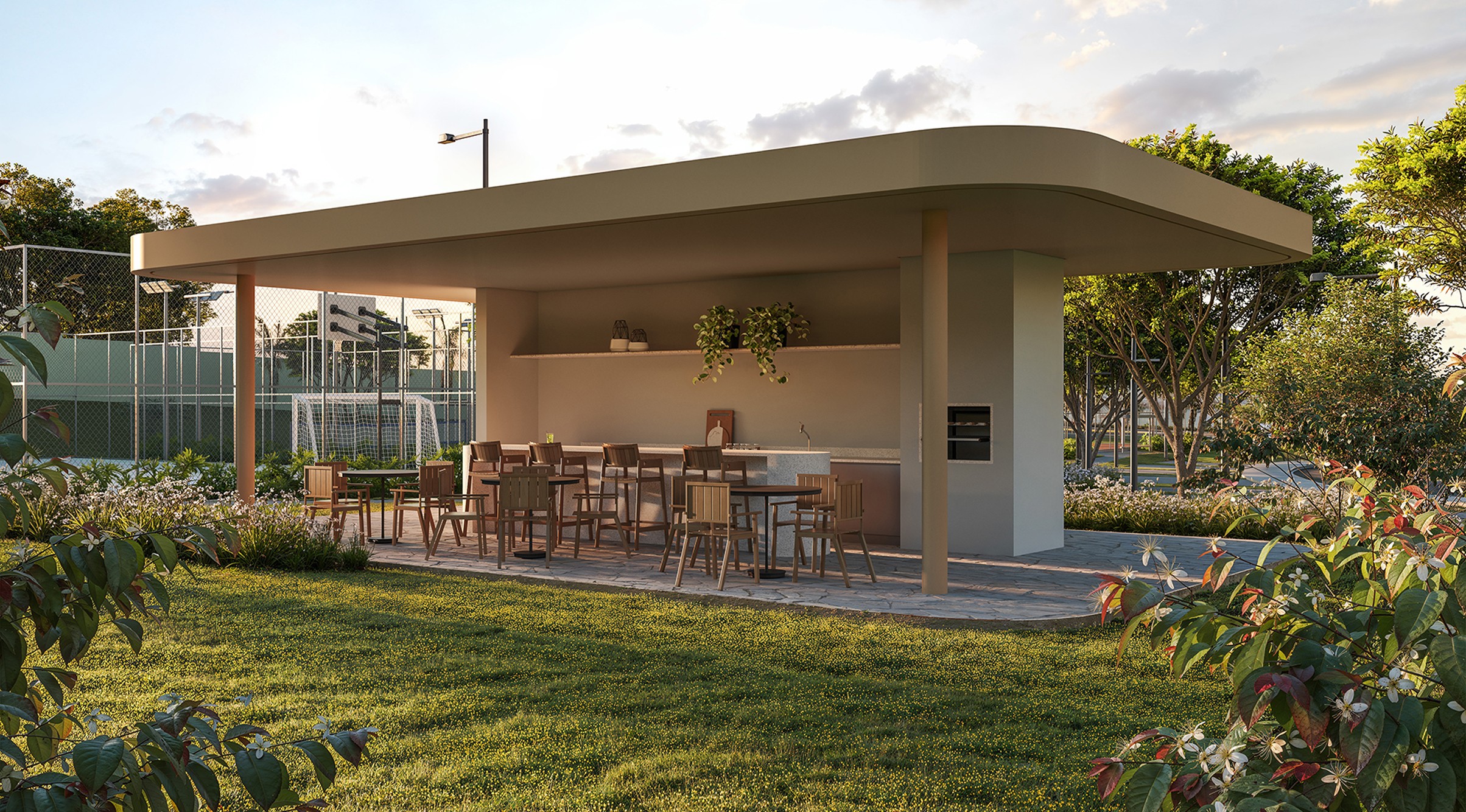 Com áreas de lazer envoltas pelo verde, o condomínio oferecerá um espaço wellness, bosque com pista de caminhada e um moderno complexo de quadras, proporcionando aos moradores uma experiência de viver completa, com acesso a serviços e comodidades exclusivas.